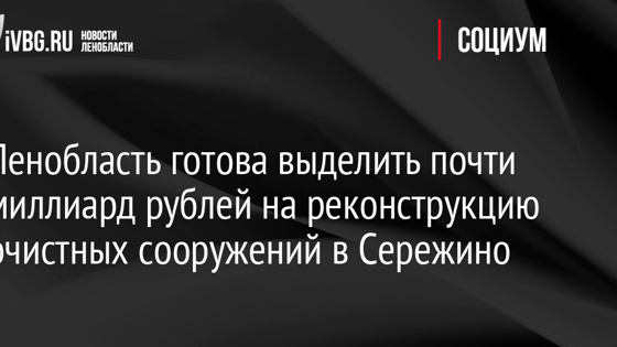 Ленобласть готова выделить почти миллиард рублей на реконструкцию очистных сооружений в Сережино