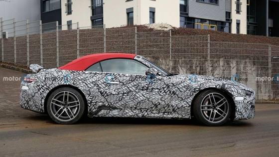 Родстер Mercedes SL 2022 был заснят недалеко от трассы Нюрбургринг. На фотографиях можно увидеть, что крыша родстера уже не скрыта камуфляжем. Эта тканевая крыша красного цвета. Отмечается, что кузов автомобиля будет по цвету констатировать с крышей.