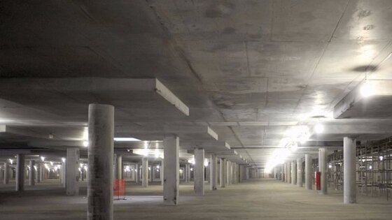 Подземные парковки жилых корпусов 2008 и 2013 готовы принять автовладельцев. Отмечается также, что площадь машино-мест составляет от 8,1 до 17,3 кв. метров.