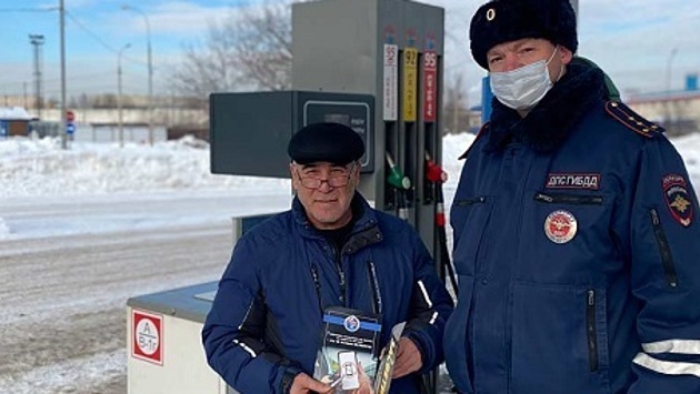 Сотрудники ГИБДД объяснили посетителям и сотрудникам АЗС об опасности использования мобильного телефона во время участия в дорожном движении, а также рекомендовали применять в одежде световозвращающие элементы.