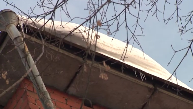 Снежная лавина сошла с крыши дома на улице Терешковой