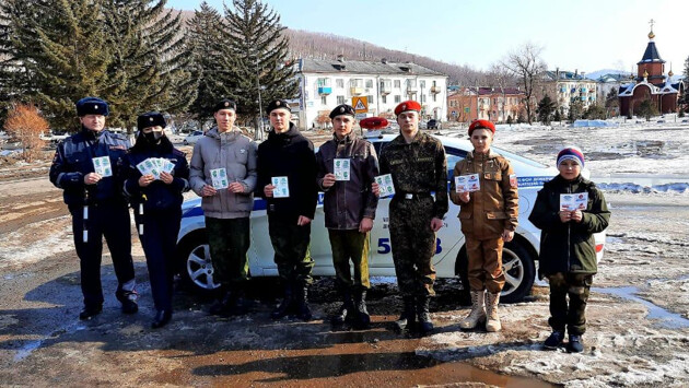 Юнармецы помогли сотрудникам ГИБДД поздравить женщин в Приморье