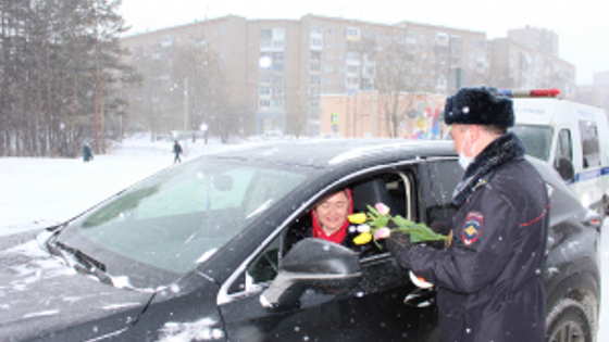 Сотрудники Госавтоинспекции Удмуртской Республики поздравили женщин с Международным женским днем
