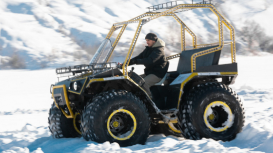 В основе нового вездехода лежит прочная лонжеронная рама, созданная при помощи технологии лазерной резки. Отдельно стоит отметить механизм рулевого управления, который позволяет развернуться машине на участке шириной 6,2 метра. Общая грузоподъемность авто равна 0,9 т.