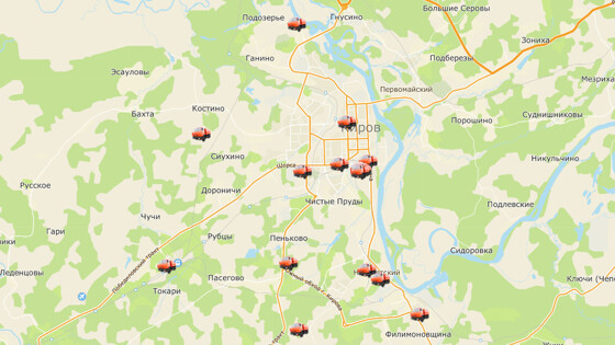 Также через сервис можно следить за пробками на дорогах. Спецтехника оснащена системой ГЛОНАСС, которая позволяет отслеживать передвижение машин в режиме реального времени.