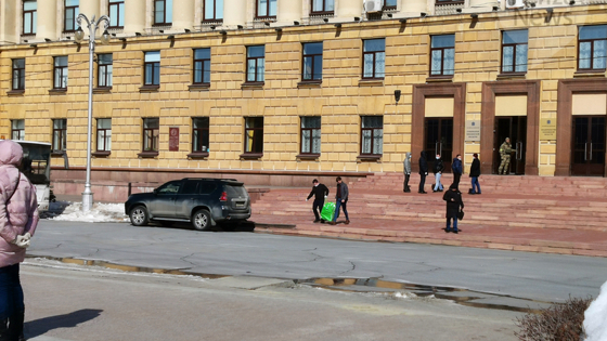 Они погрузили ее в белый автобус «ЛиАЗ» с московскими номерами, стоявший недалеко от центрального входа в здание правительства Пензенской области. Сам вход в момент выноса сумки контролировался человеком в камуфляже.