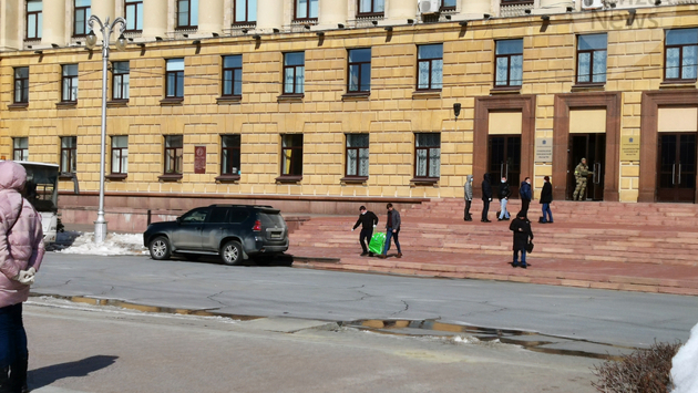 Пенза, 21 марта – PenzaNews. Два человека в штатском вынесли из здания правительства Пензенской области, где ранее прошли обыски в рамках уголовного дела о взяточничестве, возбужденного в отношении губернатора Ивана Белозерцева и ряда других лиц, большую сумку зеленого цвета.