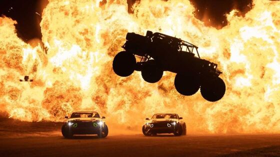 В какой-то момент с спорткарам присоединился один из пилотов багги. После тройного дрифта, Ultra4 Racing 4440 на мгновение отделился от «Мустангов», чтобы при помощи трамплина перепрыгнуть через спорткары, на фоне которых произошла серия мощных взрывов.