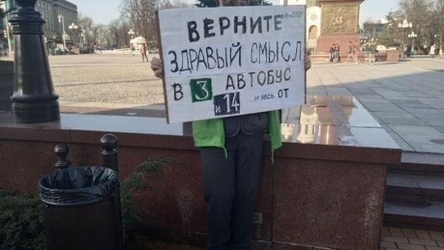 В Калининграде инвалид вышел на одиночный пикет из-за плохой работы автобусов (фото)