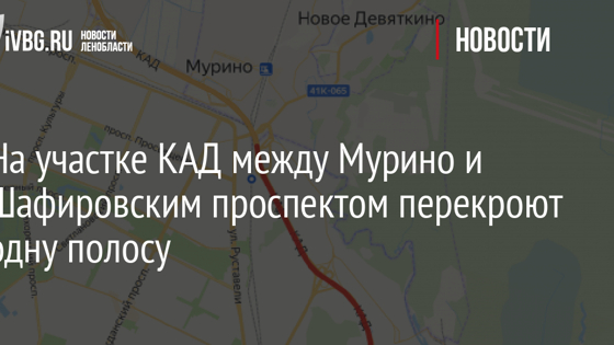 На участке КАД между Мурино и Шафировским проспектом перекроют одну полосу
