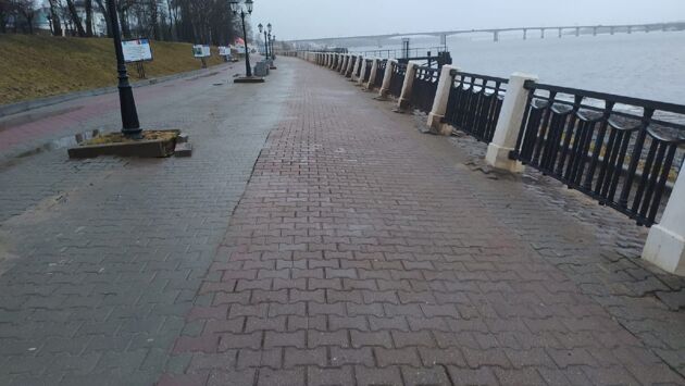 Набережная в Костроме поплыла вместе с тающим снегом