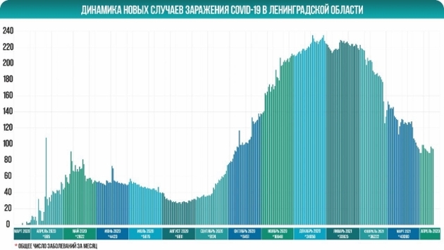 Всего за время пандемии в Ленобласти выявлено 41 078 инфицированных, из них 38 435 человек выздоровели, в том числе 87 пациентов выписаны за минувшие сутки. Умерли от ковида 1048 жителей, в том числе 12 апреля в регионе было зарегистрировано еще три летальных исхода.
