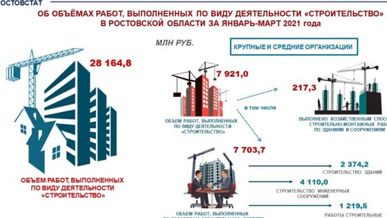 За 1 квартал текущего года донские строительные компании выполнили объем подрядных работ на сумму 28,2 млрд рублей. Об этом сообщает Ростовстат.