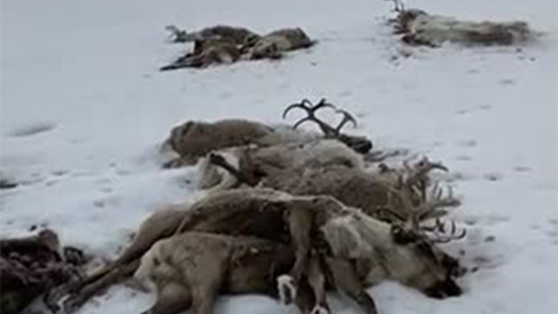 В социальных сетях появилось видео, на котором местный житель села показывает трупы животных, лежащих на снегу. «По всей Тундре валяются дохлые олени. Они вымерли здесь, не знаю от чего. Их я уже насчитал штук 300», — говорит голос за кадром.