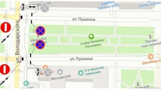 Во время празднования Дня Победы в Пензе вводится временная схема организации дорожного движения. Об этом сообщили в администрации города.