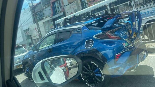 В Сети появились снимки необычного тюнинга Toyota C-HR. Автомобиль успели заснять на общих дорогах в Шри-Ланке, владелец оборудовал его множеством декоративных элементов, включая двойной спойлер, соединенный с багажником на крыше.