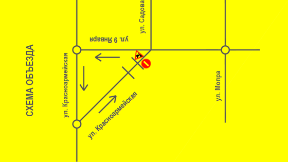 На время реконструкции трубопровода будет организовано одностороннее движение всех видов транспорта от ул. Красноармейская в сторону ул. МОПРа. Обратно на ул. Красноармейская можно будет вернуться по ул. 9 Января.