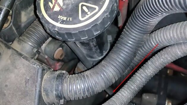 Патрубок закреплен самозажимным хомутом. Удобно его снять с помощью пассатижей.
