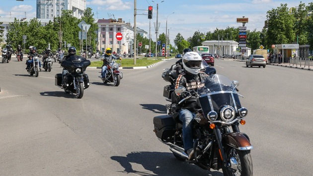 Лидирующим участником колонны стал глава Дзержинска Иван Носков на мотоцикле Harley-Davidson.