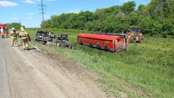 На трассе М5 под Сызранью фура с цистерной вылетела в кювет и опрокинулась