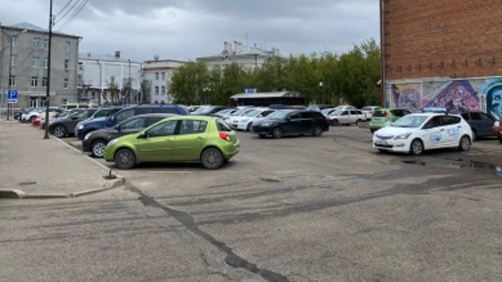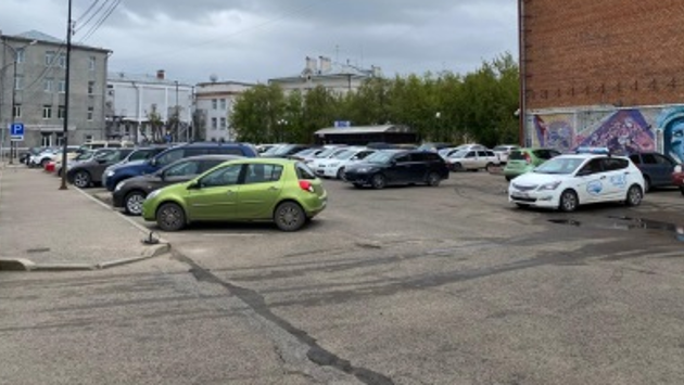 В Иркутске парковку у здания по улице Ленина, 14Б оборудуют шлагбаумами