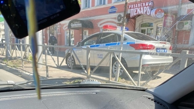 В центре Рязани засняли припаркованную на тротуаре машину ДПС