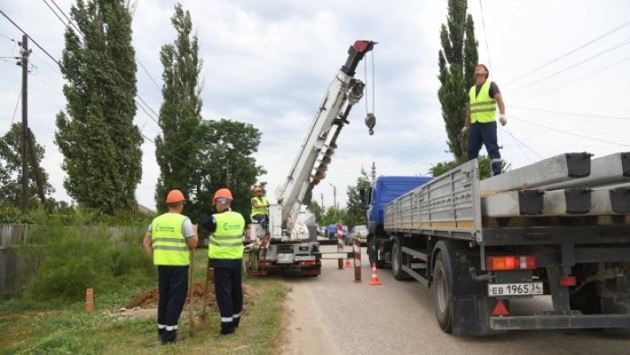 Здесь работы идут уже второй месяц. К концу июля в Степном установят более 70 опор, оснащенных светодиодными энергосберегающими лампами.