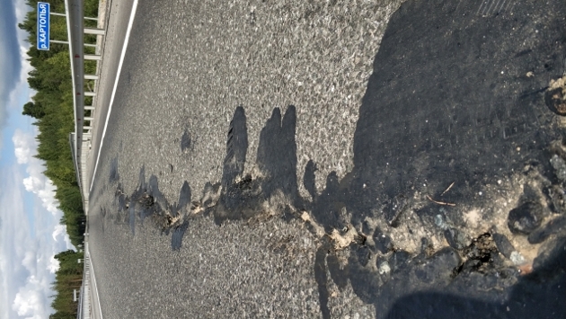 «Федеральная трасса «Югра». Участок от Советского до Ловинской. Мост через реку Картопья. Трасса, которую год назад помпезно открыли, трескается, — комментирует видео Антон Пантин. — Ситуация такая же, как на федеральной трассе на Унъюган. Грунт просел, машины сильно подпрыгивают. На скорости автомобиль может выкинуть с дороги в отбойники и не факт, что они предотвратят падение в воду. Вместо того, чтобы срочно производить ремонт по гарантийному сроку, мозгов у дорожников и чиновников хватило только на установку знака «Неровная дорога» и ограничение скорости до 50 км в час».