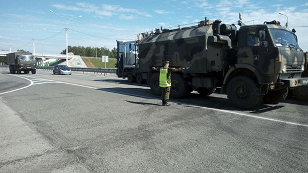 В ходе проведения занятий сотрудники военной автоинспекции регулировали проезд транспорта, а также контролировали безопасность движения воинских колонн по дорогам общего пользования