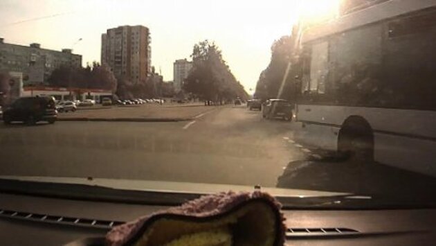 Героем ролика стал водитель автобуса № 130. Столкновение с общественным транспортом автору видео удалось избежать чудом.