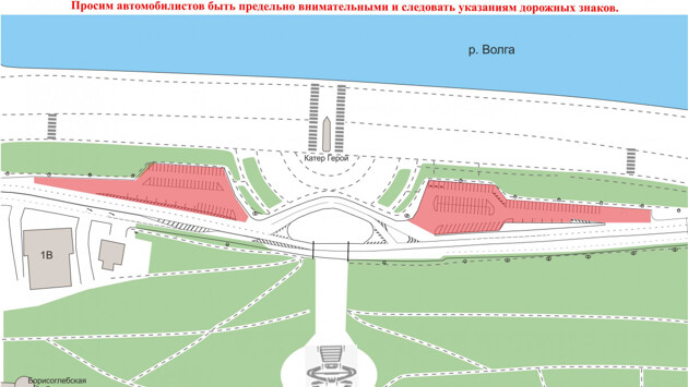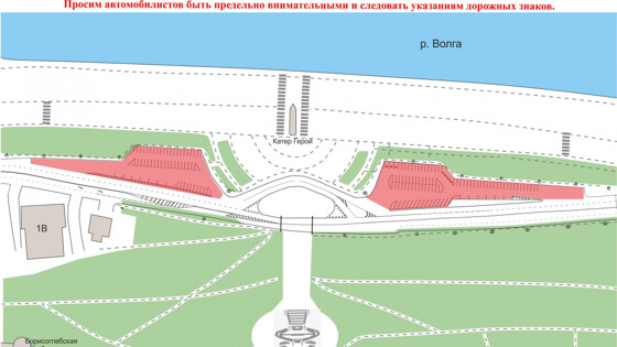 Ограничения для движения транспорта будут введены с 00.01 23 июля до 21.00 26 июля на Нижне-Волжской набережной на парковках, расположенных слева и справа от памятника. Дело в том, что в это время там будет проводиться спортивное мероприятие.