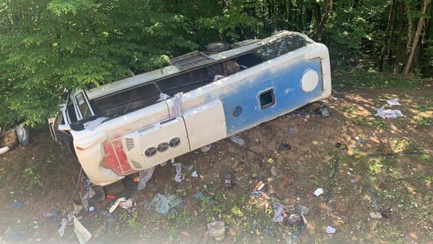 ДТП произошло утром в субботу, 24 июля. По предварительной версии, у автобуса отказали тормоза в момент поворота. В результате он съехал с дороги и перевернулся. Ведомство уточнило, что автобус был частным, а не туристическим, как сообщалось изначально.