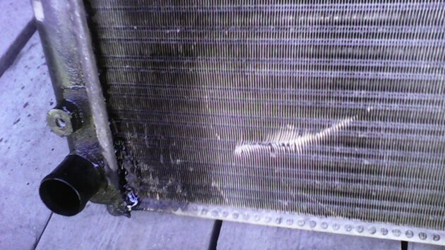 Используя холодную сварку, можно заделать почти все трещины в радиаторе. Понадобится просто обезжирить поверхность вокруг и заделать ее мягкой сваркой. Спустя час сварка затвердеет и можно будет продолжать движение.