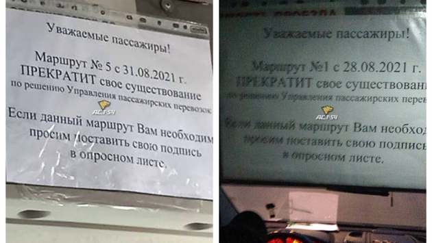 Сегодня утром горожане заметили объявления в некоторых маршрутных такси, в которых сообщалось о возможном прекращении работы.