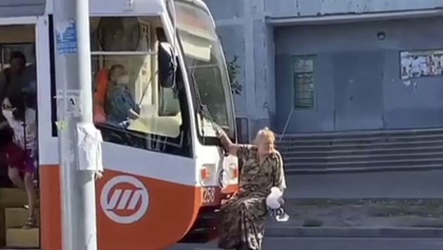 В Ульяновске пенсионерка села на цепной прибор трамвая, из-за чего водитель некоторое время не могла продолжить движение. Инцидент попал на видео, которое опубликовал Telegram-канал Daily Storm.