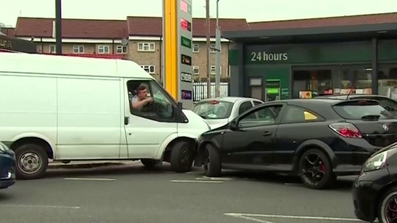 Водители отказываются пропускать в очередь кареты скорой помощи - у которых действует приоритет. Это крупнейший топливный кризис на британских островах. Последний был в нулевых - когда к власти пришли лейбористы.