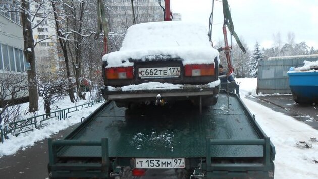 В Старом Крюково на стоянку временного хранения переместили очередной брошенный автомобиль