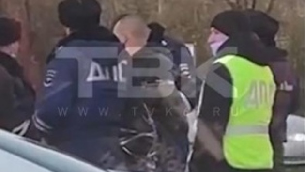 В Красноярске инспекторы ДПС обмотали буйного нарушителя скотчем