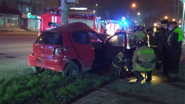Он ехал по Большевистской со стороны Речного вокзала в направлении улицы Выборной. И в районе дома №32, это 76-я школа, по неясной пока причине водитель на высокой скорости въехал в столб.
