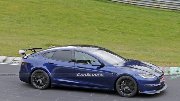 Фотошпионы поймали Tesla Model S Plaid с убирающимся антикрылом, которое также меняло угол наклона на протяжении всего круга, на Нюрбургринге. Изменения угла свидетельствует о том, что Tesla стремится к более высокой скорости на поворотах.