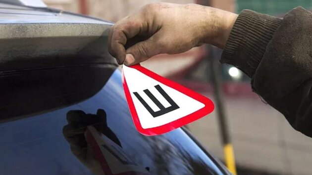 Знак "Шипы" - большая буква "Ш" в красном треугольнике на белом фоне в советские времена крепили на автомобили с шипованной резиной. Это делалось для того, чтобы предупредить едущий позади транспорт. Ведь тормозной путь у шипованных машин был существенно меньше, чем у других авто.