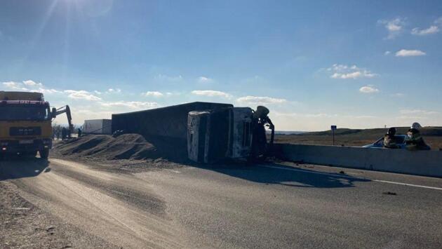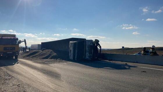 В Кочубеевском округе у КамАЗа лопнуло колесо, в результате чего он перевернулся и загорелся По сообщению краевого УГИБДД ГУ МВД России, инцидент произошёл 26 октября около 2-х часов дня на 12 километре автодороги «Подъезд к городу Ставрополю». «У гружёного семенами подсолнуха КамАЗа произошла разгерметизация переднего колеса. Неуправляемый автомобиль наехал на бетонные ограждения, выехал на встречную полосу, после чего кабина загорелась. Пострадавших в результате происшествия нет», — сообщили в ведомстве. Спасателям удалось оперативно ликвидировать возгорание. Спецтехнике предстоит убрать семечки с проезжей части, а грузовик отправится в ремонт.