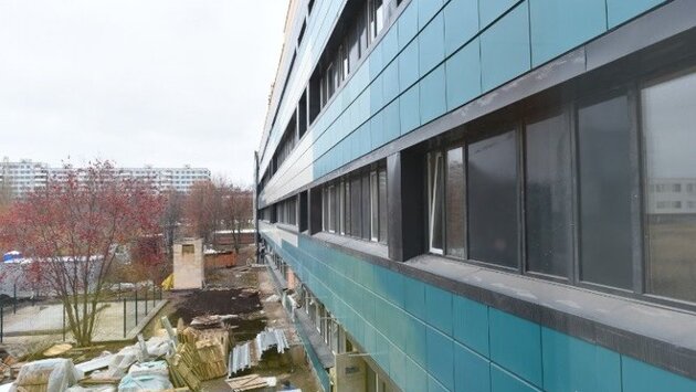 Рабочие обустраивают фасад, устраивают внутренние инженерные сети, ведут монтаж системы медицинского кислородоснабжения и вакуума. Процент выполнения работ — 85%. Ожидается, что к концу года объект завершат.