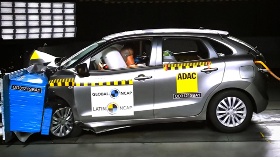 Хэтчбек Suzuki Baleno производят в Индии специалисты компании Maruti Suzuki. Индийская версия в стандартной комплектации оборудована двумя подушками безопасности. В ходе испытаний автомобиль продемонстрировал недостаточную защиту коленей водителя и пассажира, а также полную незащищенность грудной клетки. По результатам первых краш-тестов эксперты оценили безопасность хэтчбека в 20 процентов за взрослых пассажиров и всего в 17 процентов для детей.