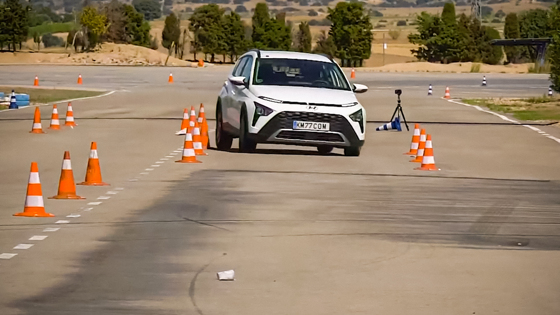 Журналисты испанского издание km77.com провели очередной «лосиный тест», в ходе которого проверили маневренность бюджетного кроссовера Hyundai Bayon. В процессе испытаний корейский автомобиль показал неплохую для своего класса управляемость. Однако полностью справиться с резкими перестроениями модели не удалось, поскольку в процесс управления паркетником то и дело вмешивалась электроника, которая следила за устойчивостью автомобиля.