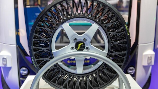 В 2024 году Goodyear запустит в массовое производство безвоздушные шины. Главное их отличие заключается в том, что внутри нет воздуха. Стоит отметить и тот факт, что в новинке отсутствует контроль давления.