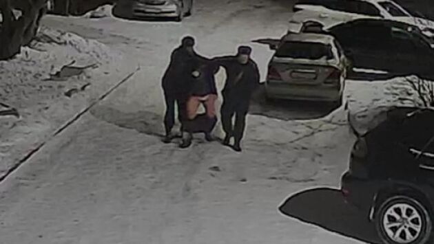 На записи видно, как сибиряк пытался свернуть зеркало одной из машин, а при появлении росгвардейцев пустился в бега. Даже после того, как мужчину заковали в наручники, он попытался скрыться, в это время с него свалились штаны.
