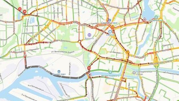 Калининград вечером в понедельник, 29 ноября, встал в девятибалльных пробках. Об этом свидетельствуют данные сервиса «Яндекс.Карты».