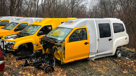 После банкротства перспективный проект вынужденно свернули и теперь несколько разных модификаций в полуразобранном виде припаркованы в одном из лесов Нью-Йорка. У многих автомобилей не успели окрасить пассажирские кабины, а у некоторых моделей и вовсе детали находятся в заводских упаковках.