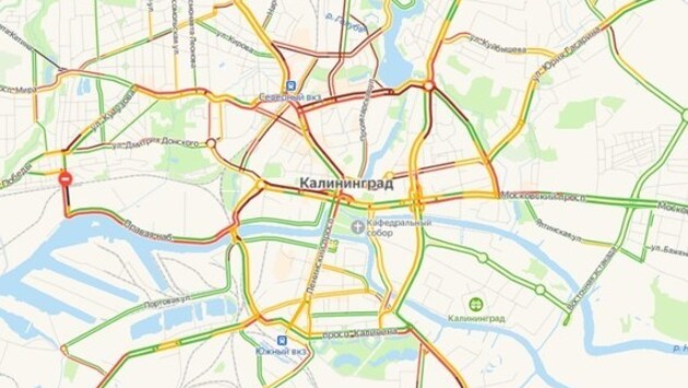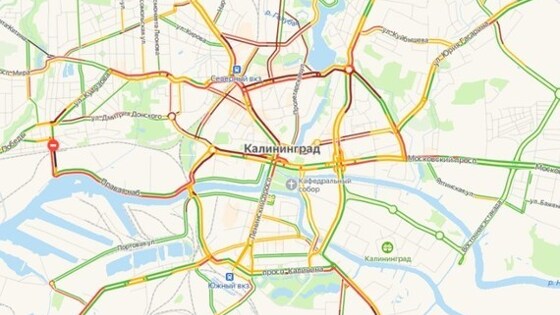 Калининград вечером в четверг, 16 декабря, встал в девятибалльных пробках. Об этом свидетельствуют данные сервиса «Яндекс.Карты».